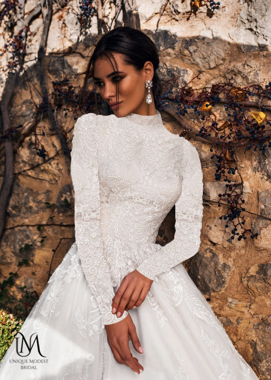 Aurora - Elegant A-Line / Ball Gown Modest Wedding Dress