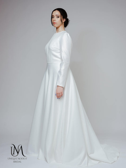 Pearl – Modest Plus-Size Satin Long-Sleeve Wedding Dress
