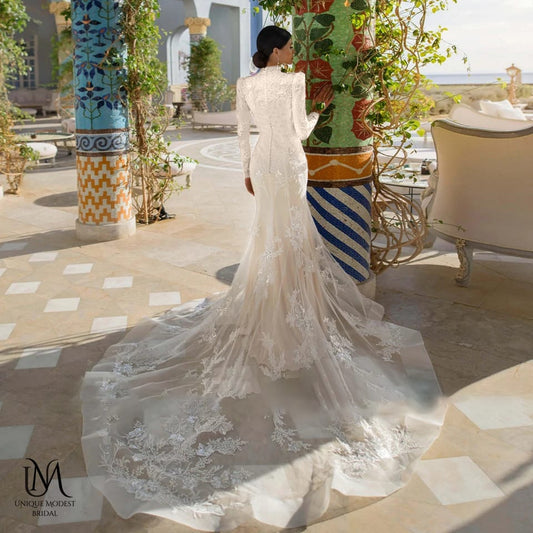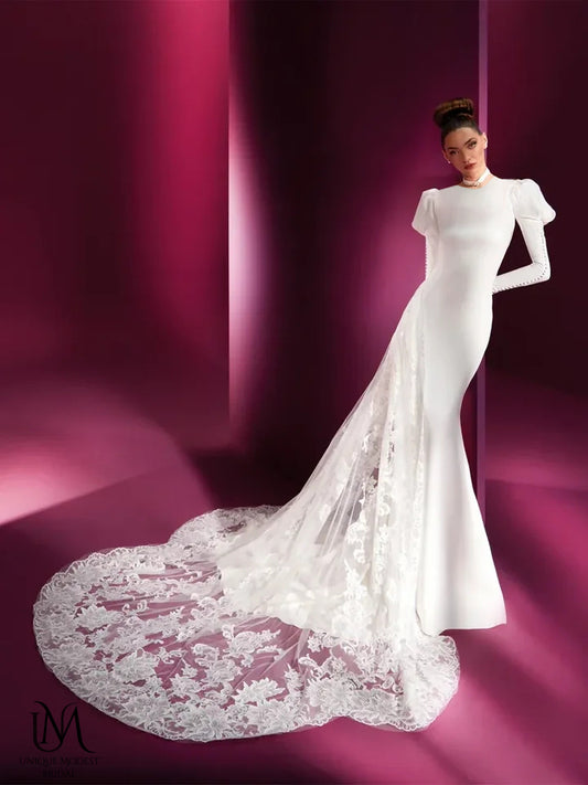 Fantasy - Sophisticated Modest Mermaid Bridal Gown for Modest Brides