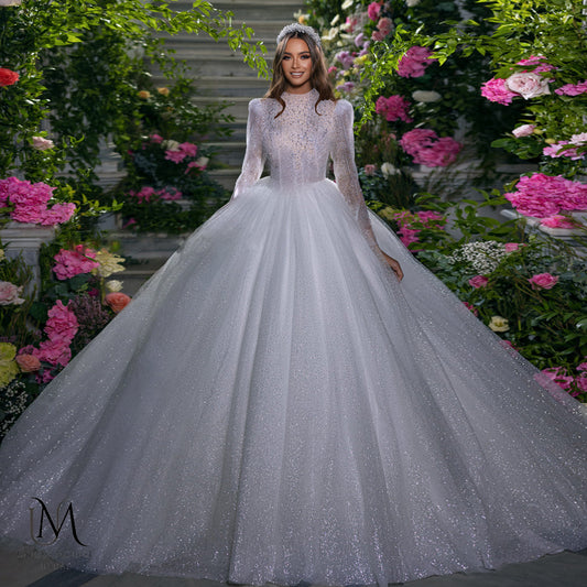 Amara - Elegant A-Line / Ball Gown Modest Wedding Dress