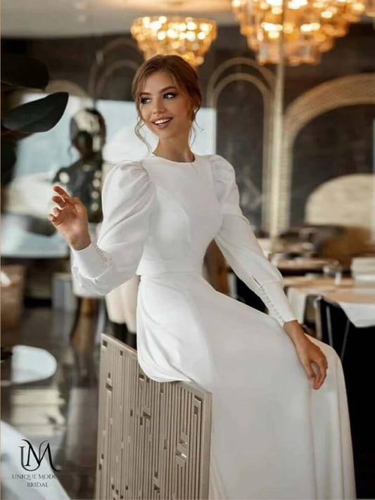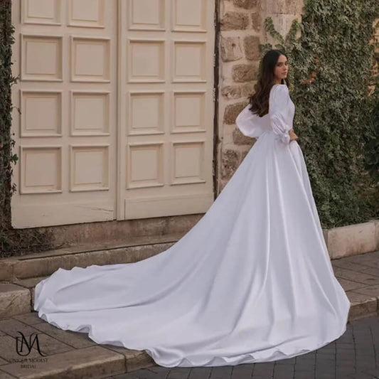 Jupiter - Simple Flow Satin Modest Wedding Dress