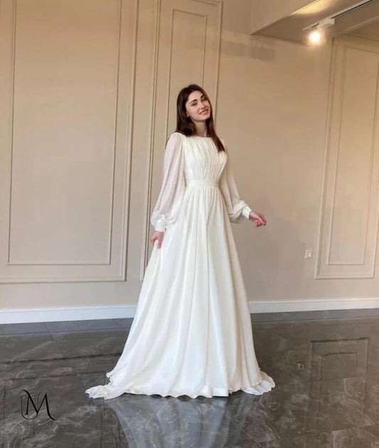 Moon - Elegant Minimalist Chiffon Modest Wedding Dress